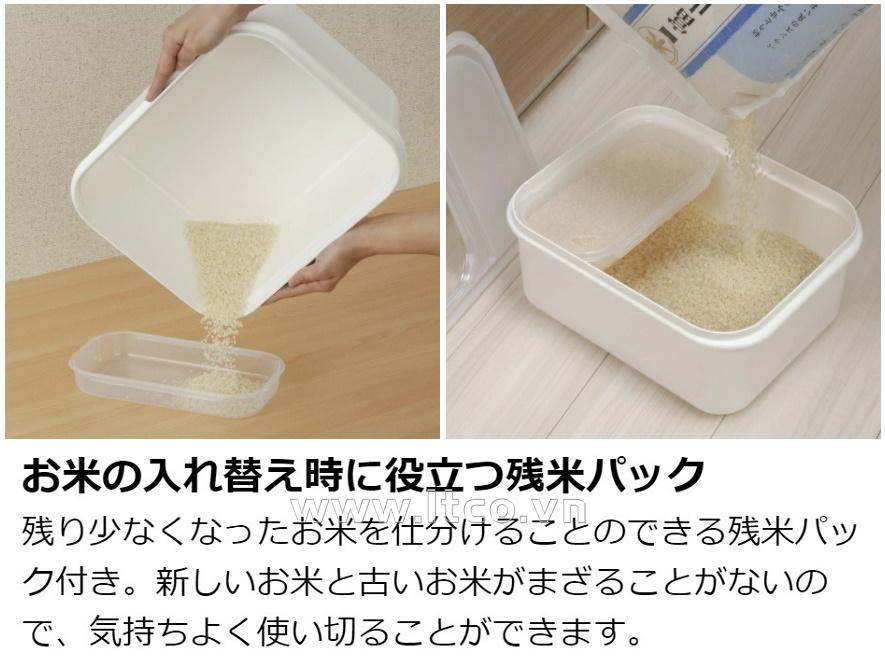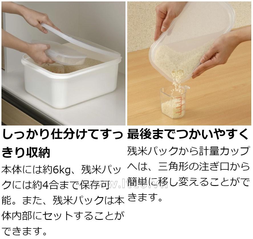 | Công dụng: | ● Dùng để chứa đựng gạo hay các loại thực phẩm, đồ khô trong gia đình, nhà hàng, quán ăn... ● Rất tiện dụng với nắp bật mở nhẹ nhàng cùng cốc đong tiện lợi |