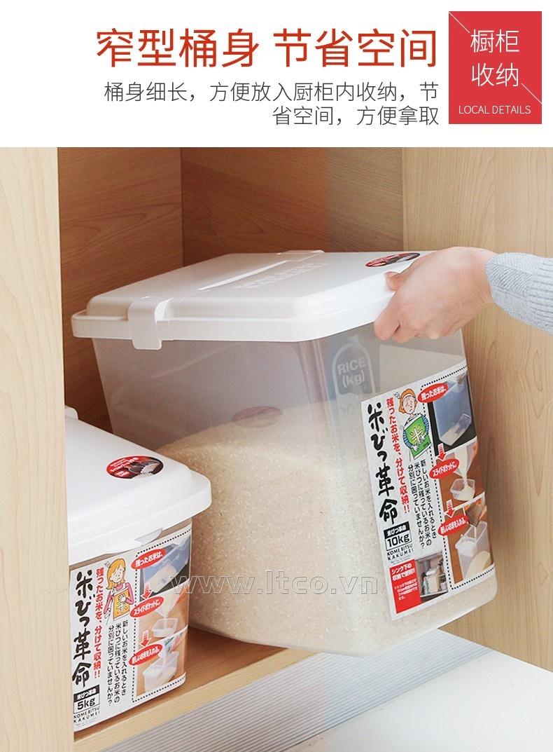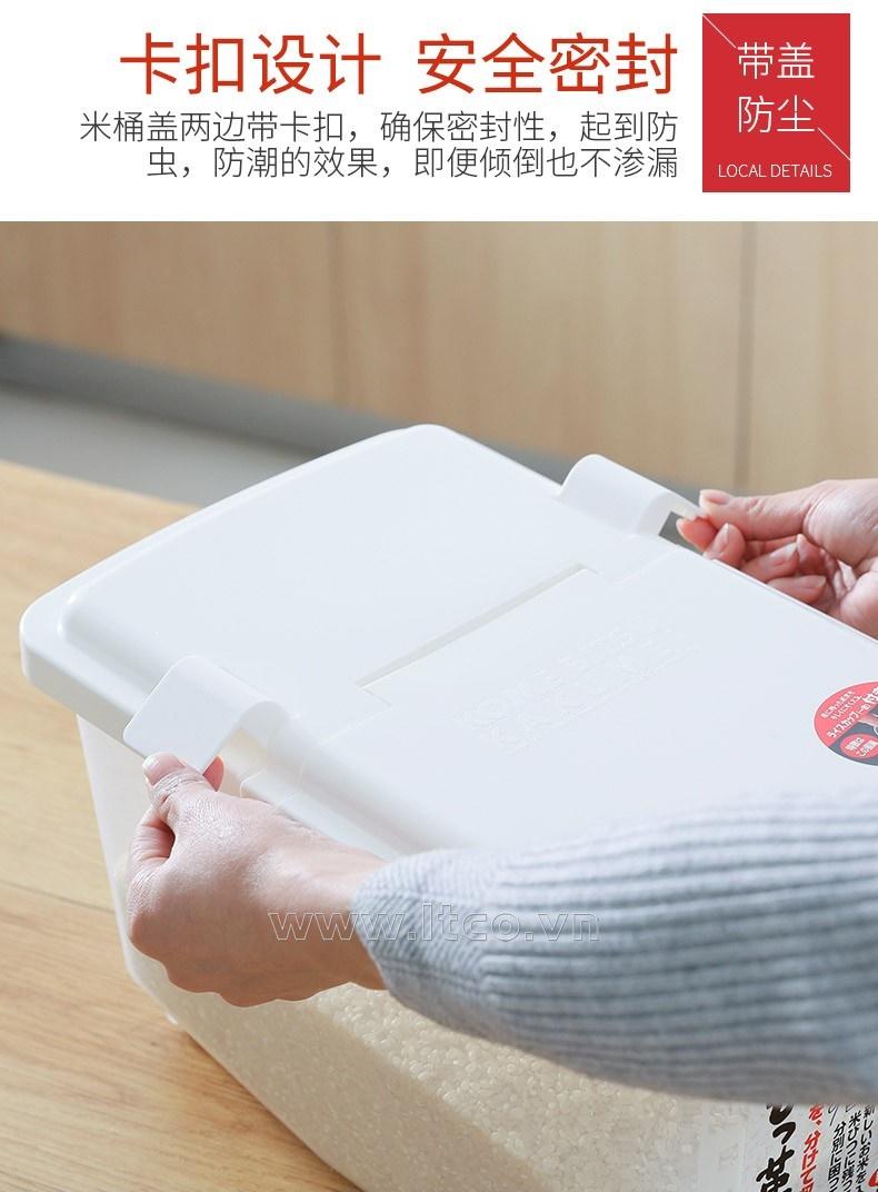 | Công dụng: | ● Dùng để chứa đựng gạo hay các loại thực phẩm, đồ khô trong gia đình, quán ăn...vv ● Với thiết kế nắp mở thuận tiện cùng bánh xe trơn giúp người dùng dễ dàng di chuyển khi sử dụng |