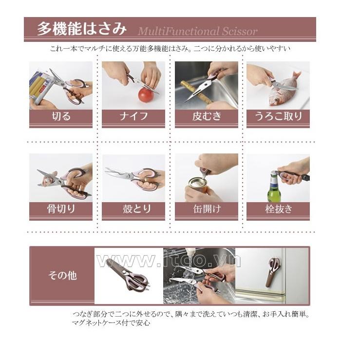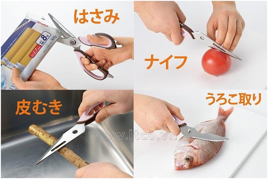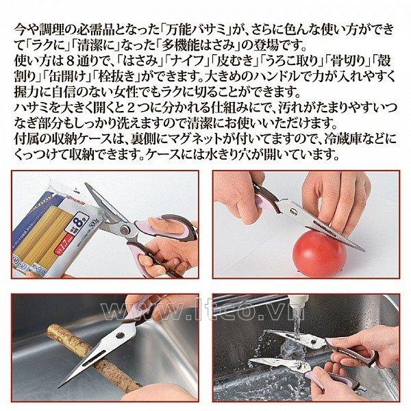 | Công dụng: | ● Với 8 cách để sử dụng bao gồm: kéo, dao, gọt vỏ, loại bỏ cặn, cắt xương, tách vỏ, mở lon, khui chai, có thể tháo ra làm đôi ở khớp nối ○ Dễ dàng tác động lực với tay cầm lớn, vì vậy bạn có thể rửa mọi ngóc ngách và luôn sạch sẽ, với mặt sau của vỏ |