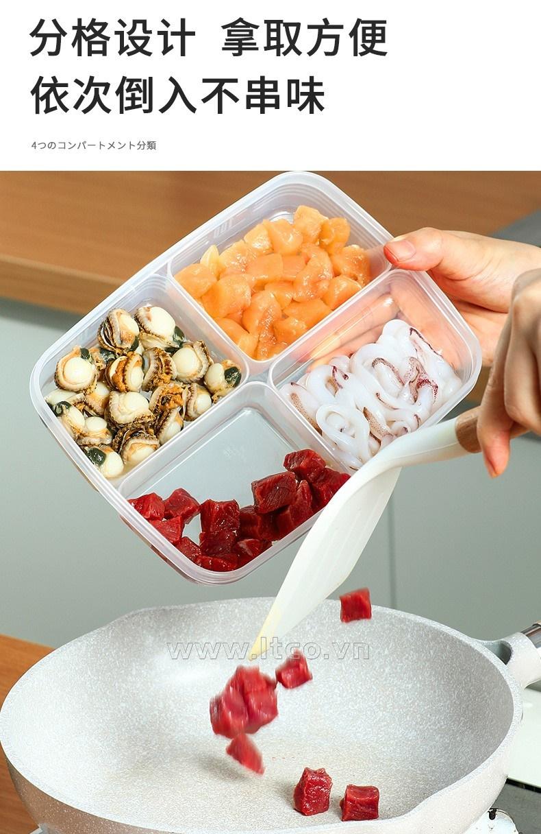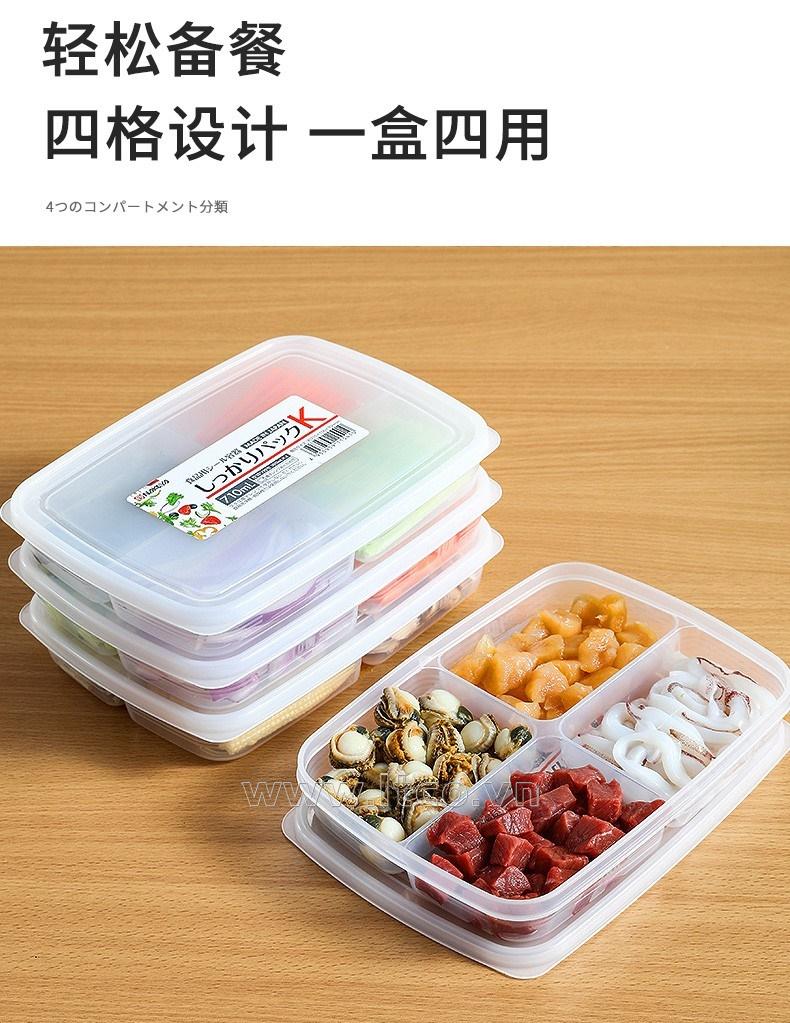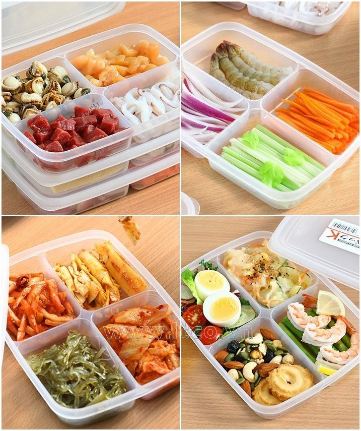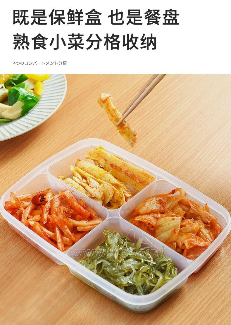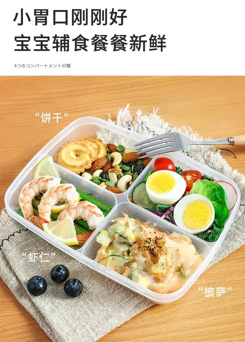 | Công dụng: | ○ Dùng để chứa đựng thực phẩm hoặc khay cơm hộp hoặc hộp chia khẩu phần ăn dặm cho trẻ nhỏ, bảo quản trong ngăn mát, có thể sử dụng được trong lò vi sóng (lưu ý: mở nắp hộp khi sử dụng!) |