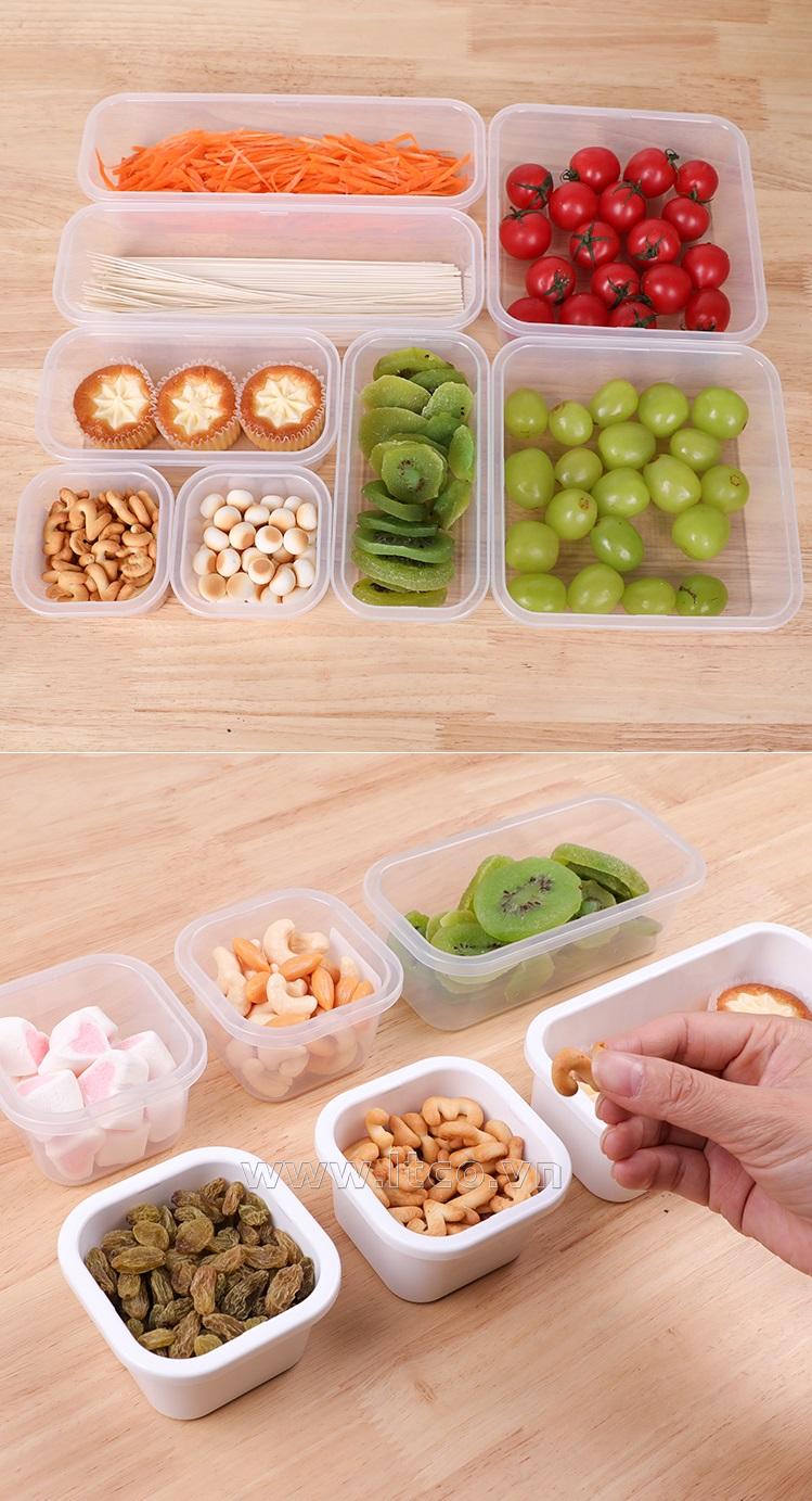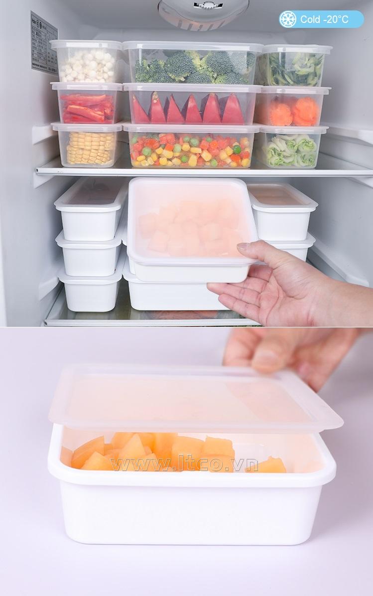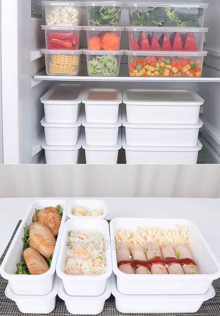 | Công dụng: | ○ Dùng để chứa đựng/ bảo quản các vật dụng nhà bếp như đũa, thìa, nĩa hoặc dùng để đựng thực phẩm cất trong tủ lạnh... ○ Sử dụng được trong lò vi sóng (lưu ý: mở nắp hộp khi sử dụng!) |