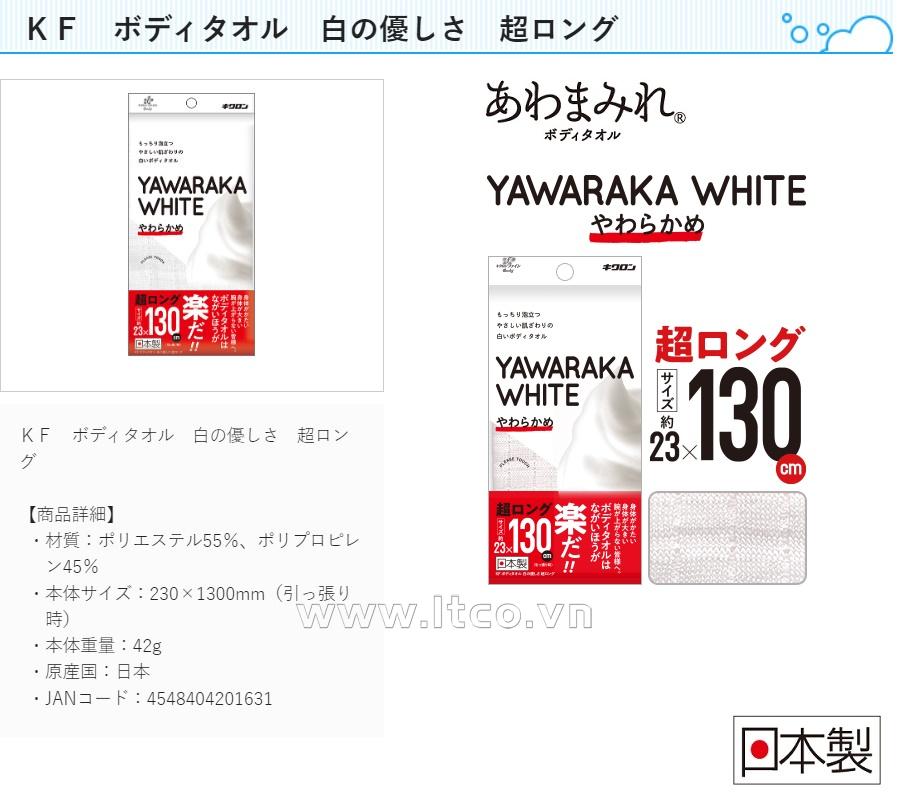 | Hướng dẫn sử dụng: | ● Ưu điểm: ○ Khăn tắm Kikulon Fine Body White Kindness Super Long 1 Piece" ○ Một chiếc khăn tắm mềm mại, nhẹ nhàng tạo bọt nhanh, ráo nước tốt ○ Dễ dàng giặt sạch. ○ Là loại siêu dài với chiều dài lên tới 130 cm giúp dễ dàng thao tác khi tắm |