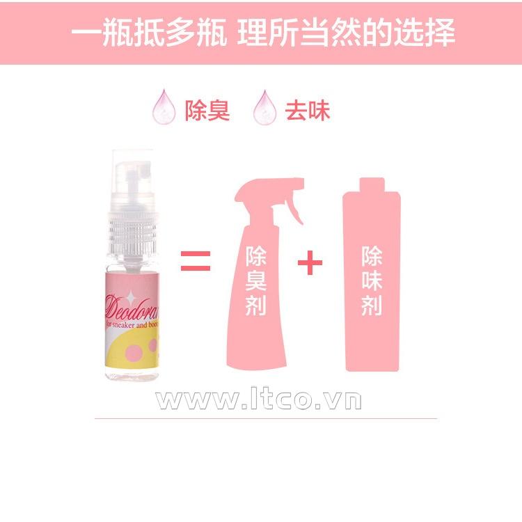 | Hướng dẫn sử dụng: | ● Mở nắp chai, giữ chai xịt thẳng đứng hướng vòi xịt vào phía trong lòng giầy và ấn nhẹ đầu vòi xịt trực tiếp vào phía trong của giày/ dép sau đó đóng nắp lại để sử dụng cho những lần kế tiếp ● Mỗi lần xịt đều có thể sử dụng từ 4~6 giờ, không nên xịt quá nhiều dẫn đến trong giầy bị ẩm ướt khi sử dụng sẽ gây khó chịu cho người dùng ● Bảo quản nơi khô thoáng, sạch sẽ ● Tránh ánh nắng trực tiếp hoặc những nơi có nguồn nhiệt cao ● Tránh xa tầm tay của trẻ nhỏ ● Sử dụng sản phẩm đúng mục đích |