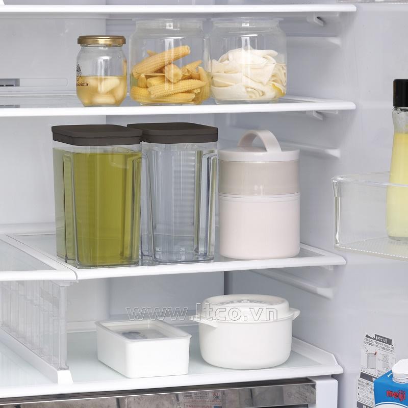 | Hướng dẫn sử dụng: | • Đổ đầy nước vào bình, đậy nắp lại và bảo quản trong tủ lạnh • Có thể đặt trên kệ tủ lạnh (ở kệ cao từ 17cm trở lên) hoặc trong ngăn cửa tủ lạnh. • Dùng ngón tay giữ chặt rãnh bình ở bên hông, nghiêng bình để rót. • Dùng miếng bọt biển để cọ rửa, vệ sinh làm sạch • Không đậy nắp ngay sau khi vừa rót nước nóng. Hãy Chờ cho nước nguội sau đó đậy nắp lại • Không tương thích với lò vi sóng & máy rửa chén bát • Bảo quản nơi khô ráo, sạch sẽ • Tránh va đập mạnh và những nơi có nguồn nhiệt |