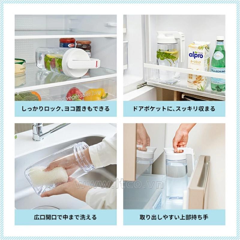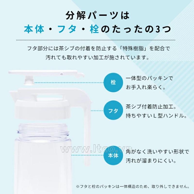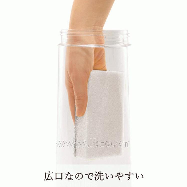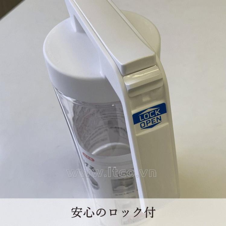 | Chất liệu/Thành phần: | ● Thân bằng nhựa AS kháng khuẩn an toàn, không chứa BPA, không sinh ra các hoạt chất gây hại trong quá trình sử dụng ● Nắp & tay cầm bằng nhựa methacrylic ● Khóa bằng nhựa PP ● Gioăng bằng Silicon |