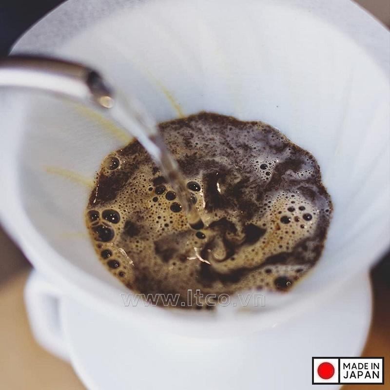 | Hướng dẫn sử dụng: | • Gập đường viền cạnh đáy lên trên, đồng thời gập ngược lại đường viền cạnh bên nhằm giữ cho giấy lọc chắc hơn, không bị rách • Đặt túi giấy lọc cà phê vào phễu kalita, tráng qua bằng nước sôi • Cho khoảng 15 ~ 20gr cà phê vào túi, rót một phần nước sôi vừa đủ đảm bảo ướt hết bề mặt cà phê sau đó ủ trong khoảng 30 giây, rồi rót đều lượng nước còn lại và thưởng thức • Lưu ý: Cà phê pha túi lọc nên xay thô để không làm tắc túi lọc ~ 01 túi có thể lọc được từ 1~2 lần pha. |