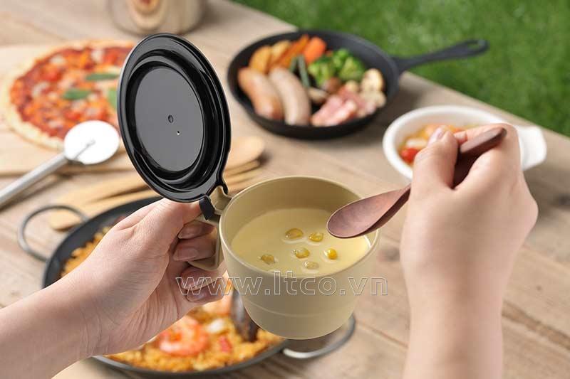 | Công dụng: | ● Dùng để đựng nước, súp hay các loại đồ uống... Cốc có nắp đậy an toàn giúp giữ gìn vệ sinh cho đồ uống bên trong. Tiện lợi cho gia đình, văn phòng hoặc mang theo khi đi du lịch/ dã ngoại hay luyện tập thể thao |