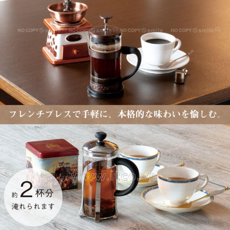 | Hướng dẫn sử dụng: | ● Hâm nóng bình trà và cốc uống bằng cách tráng qua nước sôi ● Cho trà vào bình, rót nước sôi vào theo tỷ lệ 3g trà/150ml ● Đậy nắp bình trà lại và chờ khoảng 3~4 phút, sau đó ấn khay lọc trà xuống để ép trà, rồi rót ra cốc và thưởng thức. ● Vệ sinh sạch trước & sau mỗi lần sử dụng ● Bảo quản nơi khô thoáng |