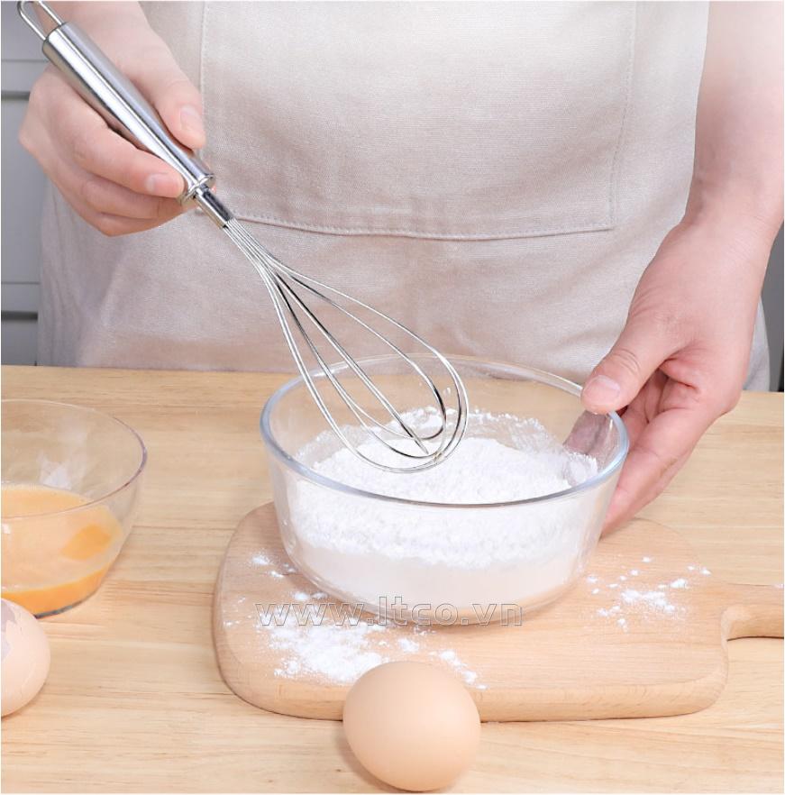 | Công dụng: | ○ Dùng để đánh bông trứng, nước sốt dùng trong nấu ăn hoặc đánh bột, kem, đường hay đánh trộn các gia vị trong quá trình làm bánh ○ Với thiết kế gọn nhẹ cùng móc treo ở đầu cán tiện lợi ○ Là vật dụng không thể thiếu trong nhà bếp của mỗi gia đình. |