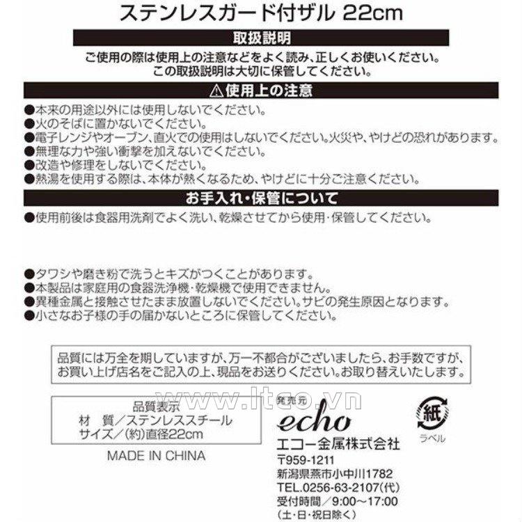 | ❉ Ưu điểm nổi bật: ● Thiết kế chắc chắn, tiện dụng: ● Rổ thiết kế các lỗ thoát nước đồng đều nhưng không quá lớn, không chỉ giúp thoát nước mà còn hạn chế được khả năng thất thoát nguyên liệu trong quá trình rửa. ● Rổ có các thanh inox gia cố xung quanh, đảm bảo sự chắc chắn & bền bỉ. ● Rổ dùng để đựng rau, củ, quả, mang lại nhiều sự tiện lợi trong quá trình làm bếp. Sản phẩm với kích thước nhỏ gọn, không tốn quá nhiều diện tích lưu trữ, giúp không gian bếp thêm gọn gàng, sạch sẽ. ❉ Sản phẩm được sản xuất bởi: Công ty Echo Metals Co., Ltd (Japan) ❉ Add: No.1782 Konakagawa, Tsubame City, Niigata Prefecture, 959-1211, Japan ❉ Sản phẩm được nhập khẩu trực tiếp từ Nhật Bản ❉ Sản xuất tại Trung Quốc |