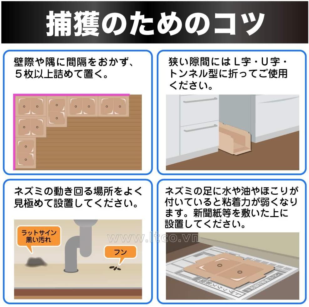 | Hướng dẫn sử dụng: | ● Mở hộp, bóc giấy màu xám ra sau đó để mồi chuột (đồ ăn thừa,phomai,bánh bích quy, thóc gạo...) vào chính giữa của tờ giấy keo. ● Gấp lại tạo bẫy hình khối theo sơ đồ chỉ dẫn in trên bao bì. Với khả năng kết dính cực mạnh sẽ giúp bắt chuột vô cùng hiệu quả. ● Khi chuột sập bẫy, bỏ cả bẫy chuột vào túi nylon rồi cho vào thùng rác, nhanh gọn, an toàn & đảm bảo vệ sinh cho người sử dụng. ● Nên đặt bẫy chuột ở những nơi chuột hay di chuyển qua lại để có hiệu quả bắt chuột cao hơn. |