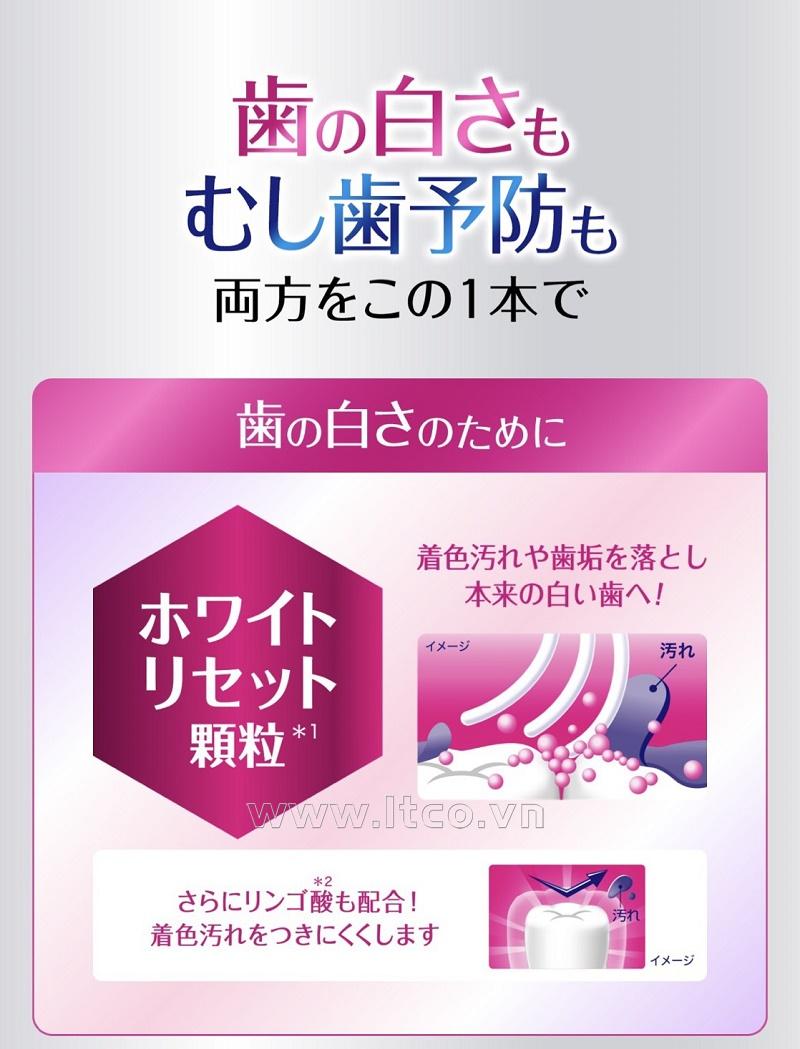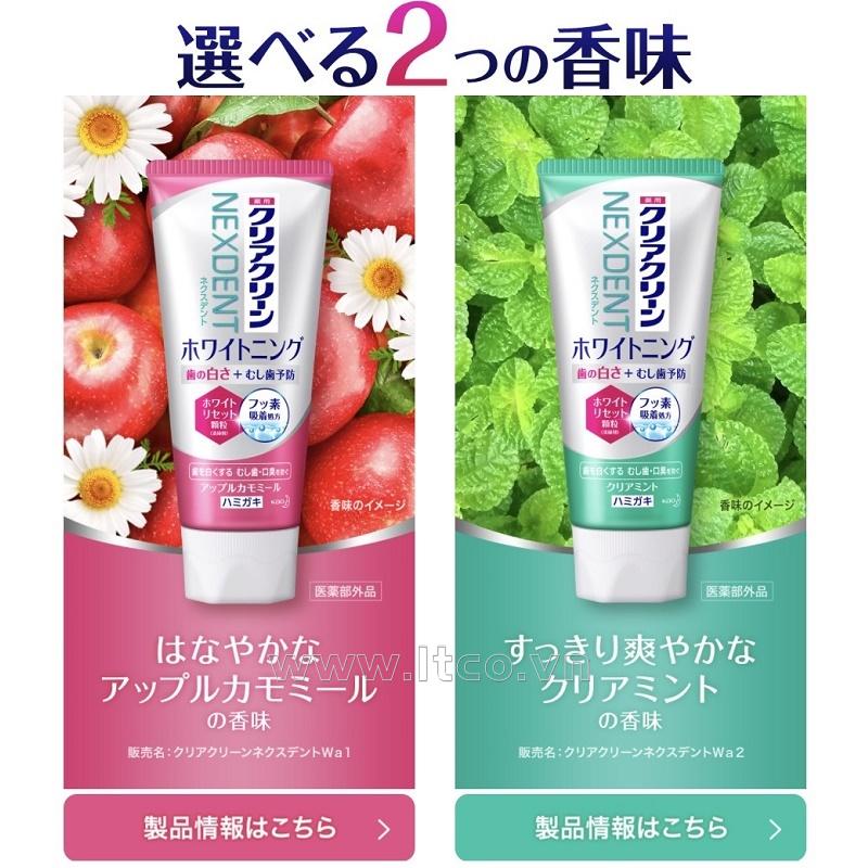 | ■ Ưu điểm: ● Thành phần Fluoride ngăn ngừa sâu răng. Làm trắng răng với các hạt màu trắng (chất làm sạch) loại bỏ vết bẩn và mảng bám để khôi phục lại độ trắng ban đầu của răng. Axit malic (chất hỗ trợ tẩy rửa) ngăn vết bẩn bám vào ● Ngừa sâu răng: Công thức hấp thụ nhiều flo (so với kem đánh răng thông thường). Flo làm cho men răng khó hòa tan trong axit và ngăn ngừa sâu răng. Phòng chống mùi hôi miệng. làm trắng răng; kể cả mùi hôi thuốc lá cũng được loại bỏ ● Ngoài ra, các thành phần Hương táo tươi mát lan tỏa khắp khoang miệng và giữ cho hơi thở luôn sạch sẽ, sảng khoái suốt cả ngày ■ Thận trọng khi sử dụng: ● Không sử dụng nếu có vết trầy xước v.v. ● Cẩn thận không để kem đánh răng văng vào mắt. Rửa kỹ ngay lập tức mà không chà xát, vì có thể làm hỏng mắt của bạn và nếu vẫn còn bất kỳ dấu hiệu bất thường nào, hãy tham khảo ý kiến bác sĩ nhãn khoa. ● Nếu xuất hiện các triệu chứng bất thường ở miệng, phát ban, ngứa hoặc ho dữ dội, hãy ngừng sử dụng và tham khảo ý kiến của bác sĩ. ❉ Sản phẩm được sản xuất bởi: Công ty Kao Corporation Co., Ltd (Japan) ❉ Add: No.14-10, Nihonbashi Kayabacho 1-chome, Chuo-ku, Tokyo 103-8210 Japan ❈ Sản phẩm được nhập khẩu trực tiếp từ Nhật Bản ❈ Sản xuất tại Nhật Bản | MADE IN JAPAN |