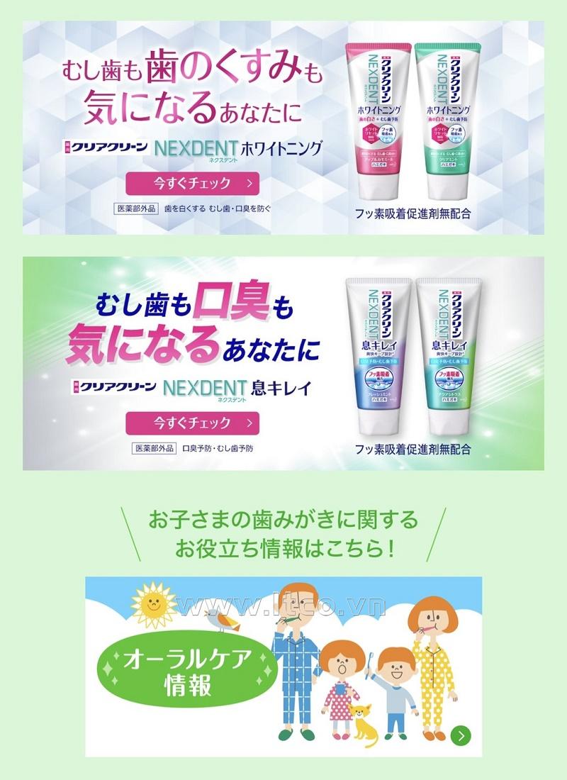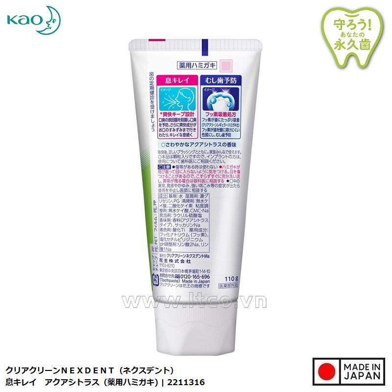 | ■ Ưu điểm: ● Thành phần Fluoride ngăn ngừa sâu răng. Làm mới chân răng đồng thời giữ cho hơi thở luôn sạch sẽ, thơm tho. ● Ngừa sâu răng: Công thức hấp thụ nhiều flo (so với kem đánh răng thông thường). Florua làm cho men răng kháng axit và ngăn ngừa sâu răng một cách hiệu quả ● Làm sạch hơi thở: Khử trùng vi khuẩn gây hôi miệng và ngăn ngừa hơi thở có mùi ● Ngoài ra, các thành phần Hương bạc hà tươi mát lan tỏa khắp khoang miệng và giữ cho hơi thở luôn sạch sẽ, sảng khoái suốt cả ngày ■ Thận trọng khi sử dụng: ● Không sử dụng nếu có vết trầy xước, v.v. ● Cẩn thận không để kem đánh răng văng vào mắt. Rửa kỹ ngay lập tức mà không chà xát, vì có thể làm hỏng mắt của bạn và nếu vẫn còn bất kỳ dấu hiệu bất thường nào, hãy tham khảo ý kiến bác sĩ nhãn khoa. ● Nếu xuất hiện các triệu chứng bất thường ở miệng, phát ban, ngứa hoặc ho dữ dội, hãy ngừng sử dụng và tham khảo ý kiến của bác sĩ. ❉ Sản phẩm được sản xuất bởi: Công ty Kao Corporation Co., Ltd (Japan) ❉ Add: No.14-10, Nihonbashi Kayabacho 1-chome, Chuo-ku, Tokyo 103-8210 Japan ❈ Sản phẩm được nhập khẩu trực tiếp từ Nhật Bản ❈ Sản xuất tại Nhật Bản | MADE IN JAPAN |