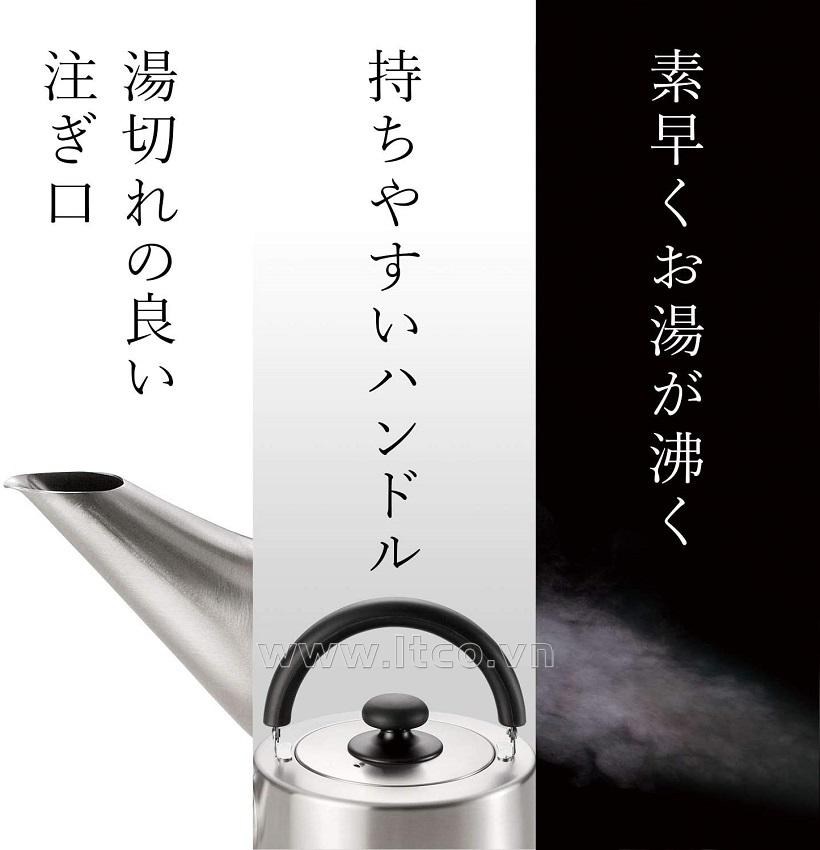 | ■ Những Lưu ý cần thiết khi sử dụng sản phẩm: ○ Lưu ý: Màu sắc có thể hơi khác so với sản phẩm thực tế tùy thuộc vào lượng ánh sáng và độ phân giải của từng thiết bị ○ Không đun nóng ấm rỗng. Trường hợp cháy hỏng cũng có thể xảy ra nếu nguyên liệu chế biến trong ấm quá ít. ○ Đặt sản phẩm lên giữa ngọn lửa để đảm bảo nhiệt được tỏa đều, khi sử dụng hai hoặc nhiều bếp lửa, không đặt tay cầm gần ngọn lửa, nên chú ý hướng của tay cầm. Nếu để tay cầm gần ngọn lửa, tay cầm có thể bị nóng gây bỏng thậm chí bị hư hỏng và tách rời khỏi ấm, ảnh hưởng đến sức khỏe & sự an toàn của người sử dụng. ○ Khi sử dụng, nên kiểm soát ngọn lửa không vượt quá đường kính của đáy ấm. ○ Không để nước chứa trong ấm một thời gian dài, nên bảo quản chúng vào vật khác chuyên dụng sau khi chế biến. ○ Không ngâm toàn bộ ấm trong nước với thời gian quá dài, dễ bị nước ngấm vào trong tay cầm thông qua khe hở nối giữa tay cầm và thân ấm (Nếu có nước trong tay cầm, hơi nước sẽ được tạo ra khi đun nóng, vì vậy hãy đảm bảo rằng tay cầm luôn khô ráo trước khi sử dụng). ○ Cần tránh ngọn lửa mạnh, chú ý điều chỉnh nhiệt độ phù hợp để sử dụng ấm được an toàn & lâu bền hơn. ○ Khi sử dụng bếp từ, hãy sử dụng theo hướng dẫn. Khi sử dụng bếp từ trên 2KW, đảm bảo sức nóng có độ lớn trung bình, nếu sử dụng một thiết bị 3KW trở lên để đun sôi nước, độ nóng quá lớn sẽ làm đáy ấm bị biến dạng và đổi màu. Không sử dụng thiết bị đun/ nấu có công suất quá cao (Nếu đáy ấm bị biến dạng, bếp từ sẽ không thể cảm nhận và điều chỉnh nhiệt độ như bình thường được, có thể sẽ gây hư hỏng & hỏa hoạn). ○ Sử dụng những miếng mút hoặc giẻ mềm để cọ rửa khi vệ sinh ấm, không nên sử dụng những búi rác, cọ xoong nồi bằng thép hoặc có độ nhám cao để cọ rửa vệ sinh sẽ dẫn đến ấm bị trầy xước, bong tróc hư hỏng và mất tính thẩm mỹ. ■ Sản phẩm được nhập khẩu trực tiếp từ Nhật Bản ■ Sản xuất tại Nhật Bản | MADE IN JAPAN |