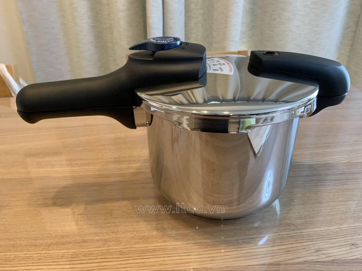 | Chất liệu/Thành phần: | ○ Thân bằng thép không gỉ (crom 18%, niken 8%) ○ Đáy dầm bằng 3 lớp kép hợp kim nhôm/ thép không gỉ (16% chrome) ○ Nắp bằng thép không gỉ (18% chrome/ 8% niken) ○ Tay cầm bằng nhựa phenolic |