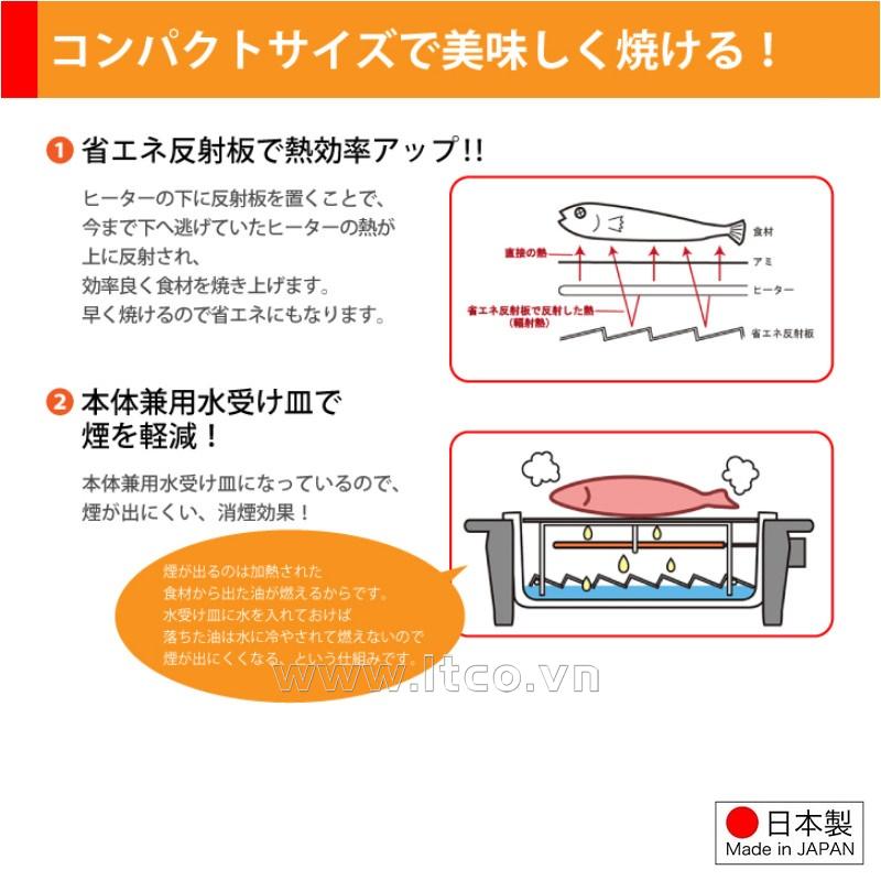 | Hướng dẫn sử dụng: | ● Chuẩn bị nguyên liệu nướng ● Điều chỉnh mức nhiệt độ phù hợp với từng loại thực phẩm ● Dùng kẹp thực phẩm để đảo/ lật thực phẩm trong khi nướng ● Thưởng thức & tận hưởng những thực phẩm nóng, sốt & tươi ngon ● Vệ sinh sạch sẽ & cất gọn bếp nướng sau khi sử dụng ■ Lưu ý: ○ Nguồn điện khi sử dụng (Thiết bị điện tại Nhật Bản sử dụng nguồn điện là 100V vì vậy hãy chú ý!) ○ Tránh bị bỏng trong quá trình sử dụng ○ Tránh va đập mạnh ○ Tránh xa tầm tay của trẻ nhỏ! |